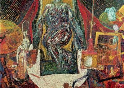 La muestra incluye también ocho xilografías de una figura’ masculina de espaldas al espectador. Está basada en una serie de imponentes dibujos que realizara el artista al óleo y pastel sobre ese tema. La fuerza del trazo en aquella serie se transforma en el agudo y nítido corte del cuchillo en la madera. Roche no hace edición de esta plancha, con ella realiza una serie de monotipos en diversas combinaciones de color. Advertimos en esto, al igual que en los dibujos y autorretratos lo actitud del artista de emplear los medios y recursos de una manera diferente, innovativa. Pero la innovación en Roche no es un fin en sí mismo, sino un mecanismo para extraerle lo máximo a esos medios, transformarlos, obligarlos a servir los propósitos expresivos del artista.