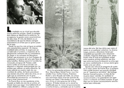 Entre los principales pintores de Puerto Rico -Myrna Báez, Rafael Ferrer, Luis Hernández Cruz, Carlos Irizarry, Francisco Rodón y Julio Rosado del Valle, los únicos que mantienen algún nivel de relación de amistad son Báez y Hernández Cruz, siendo este último el más generoso de la lista anterior. El haber estado en la cárcel ha modificado (por lo menos temporeramente) a Carlos Irizarry, y entiendo que se muestra ahora calmado y generoso.