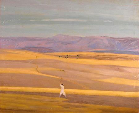 Regresó a España en 1914 y participó frecuentemente en la Exposición Nacional de Bellas Artes, celebrada en Madrid. En 1917 obtuvo el tercer premio de dicha exposición por su obra La Cancha (perdida) y tres años más tarde el segundo premio por Tierras de Labor (Museo de Arte Contemporáneo en Madrid).